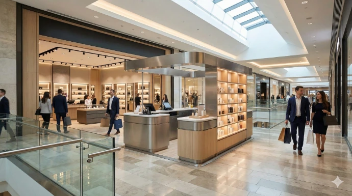 We design and execute shop‑in‑shop concepts, mall kiosks, and customized fixtures that maximize product visibility and improve sales performance. with Mall kiosks and counter units Shop‑in‑shop branded displays
